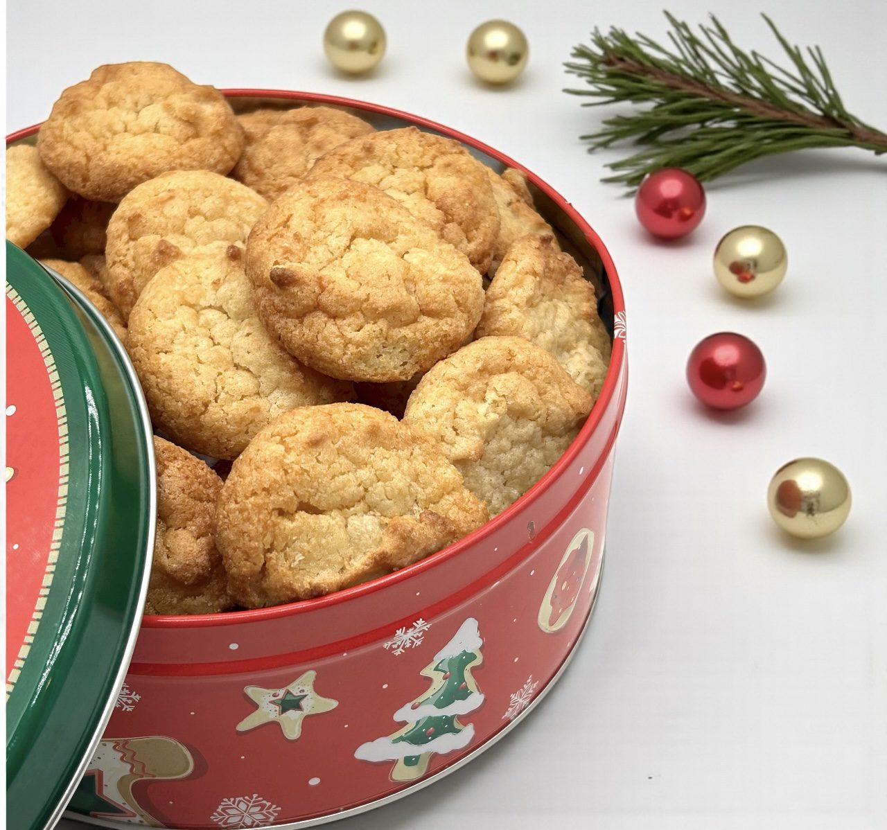 Crafted from a cherished family recipe, these little cookies are sure to please. Each holiday tin has a charming holiday design and is filled with one pound of our delicious home made bite sized macaroons. Perfectly golden and lightly crisp on the outside, with a soft, chewy center that melts into notes of toasted almond bliss. *Tin designs may vary