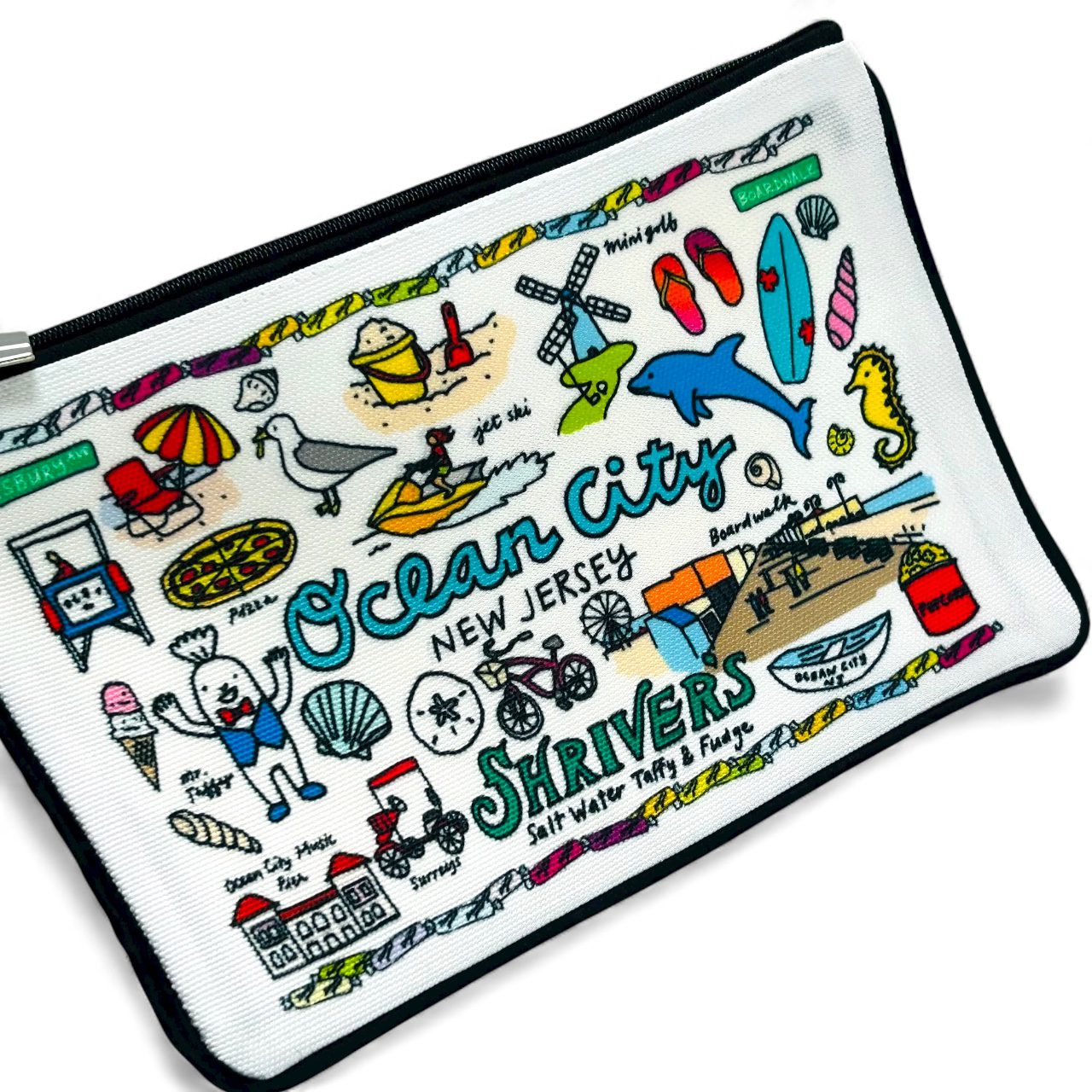 Part of a series. designed just for Shriver’s and Ocean City, the wristlet is a fun way to bring your local vibes with you wherever you go. Great as a makeup bag, to hold your beach essentials in your bag, or to carry as a bag for a night out.